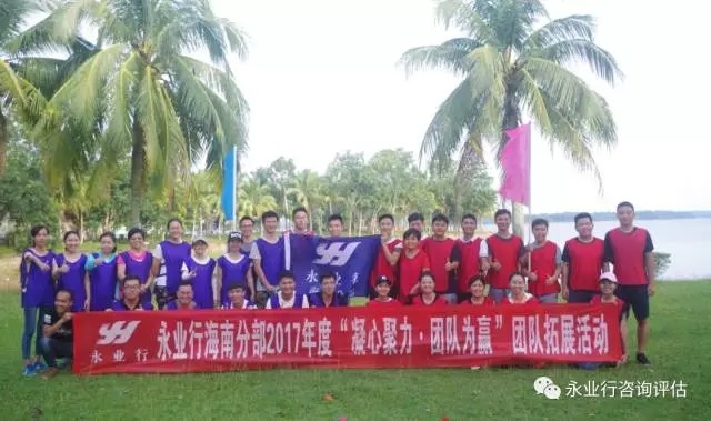 为加强公司团队建设,提高团队协作能力,2017年7月29日,永业行海南分部组织员工前往定安南丽湖拓展基地开展了为期一天的户外拓展活动。 此次活动围绕着“凝心聚力 团队为赢”的主题展开。活动团队分为“勇创队”和“荣耀队”,各团队通过集体讨论,分别制定了口号、队歌,绘制队旗,并逐一展示团队风采。在教练的指导下,各队队员相互配合、团结协作,共同完成了“极速前进”、“极限88秒”、“神笔马良”、“灭菌先锋”等一系列激发个人潜能、熔炼团队智慧的拓展项目。 活动中,队员们个个热情高涨,全力投入,掌声、笑声、欢呼声此起彼伏。大家用汗水、智慧、喜悦与成功印证了一个团结奋进、