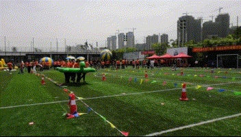 本届趣味运动会共设置了6个比赛项目,考验协作的蛟龙出海、活泼调皮的龟兔赛跑、惊险刺激的运转乾坤、奋勇冲刺的障碍接力、齐心协力的旱地龙舟、拼尽全力的拔河比赛……比赛过程挑战与趣味并存,不仅锻炼了团队协作能力,更是对队员们体力、耐力的考验。比赛现场,运动健儿的激烈角逐,激动人心;观赛团队的呐喊助威,震耳欲聋,大家不顾被烈日晒红的皮肤、被汗水浸透的衣衫,拼尽全力为团队荣誉而战,沉浸在运动带来的激情与快乐中。在冲过终点的瞬间,落后时的相拥鼓劲,胜利后的击掌庆祝,作为永业行人的自豪感与荣誉感油然而生。一轮轮激烈的角逐后,各组队员由比赛之初时的“矜持”快速发展成为相拥庆祝的战友。如果说一场比赛建立不了感情,那么,就来两场?